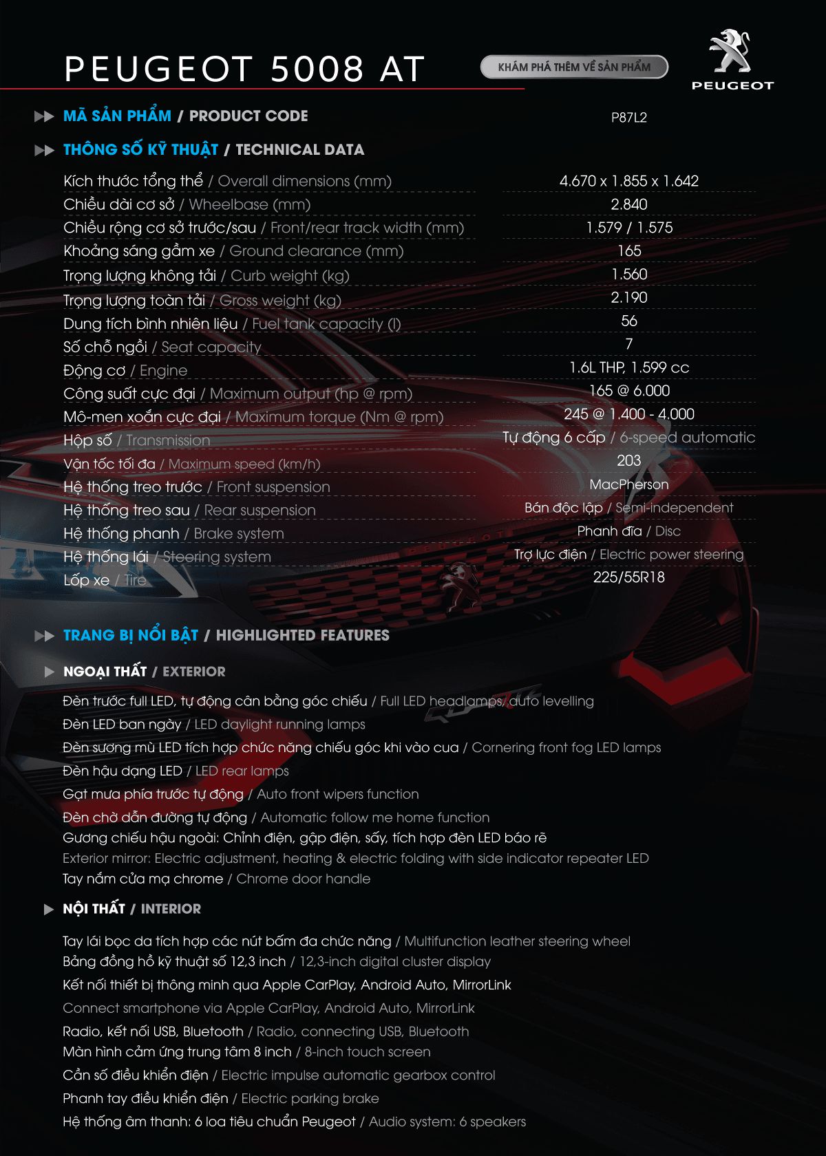 Xem thêm Thông Số Kỹ Thuật: Peugeot 5008 AL, Peugeot 5008 AT, Peugeot 3008 AL, Peugeot 3008 AT, Peugeot Traveller, Peugeot 2008, Xe máy Peugeot Django